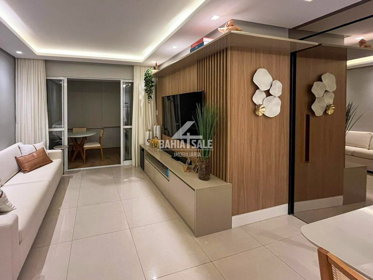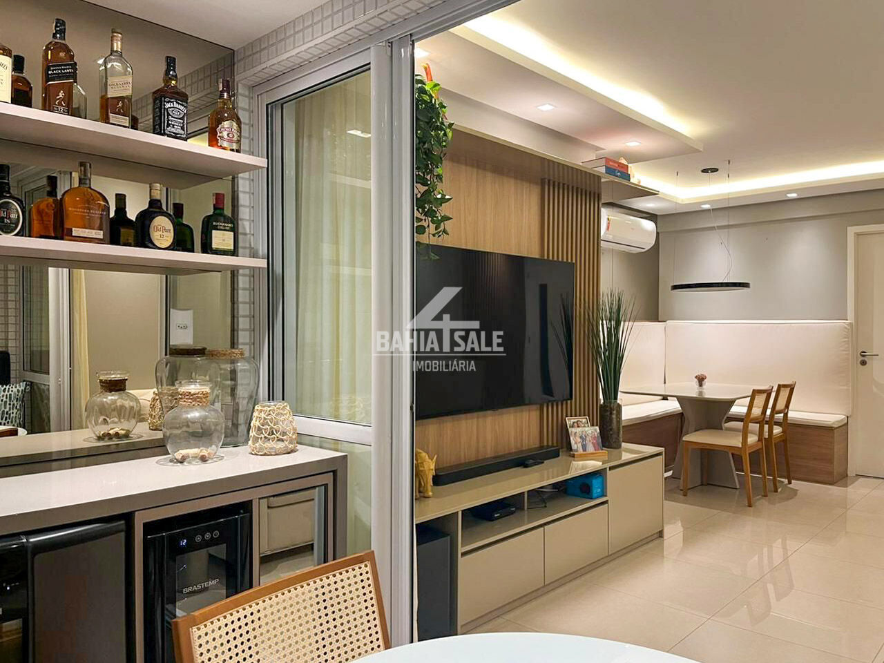 - Ambientes: 3 quartos (1 suíte) com ar-condicionado split. Sala em dois ambientes com teto rebaixado e iluminação indireta, varanda integrada e cozinha completa com área de serviço e WC.