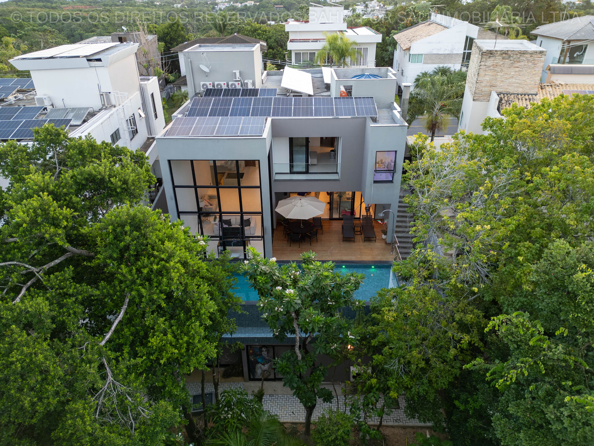 Para os apreciadores, uma adega exclusiva adiciona um toque de sofisticação. A casa é equipada com um sistema de automação de ponta, permitindo o controle de iluminação, som e climatização com facilidade. Além disso, a presença de energia solar garante sustentabilidade e economia, sem abrir mão da modernidade.