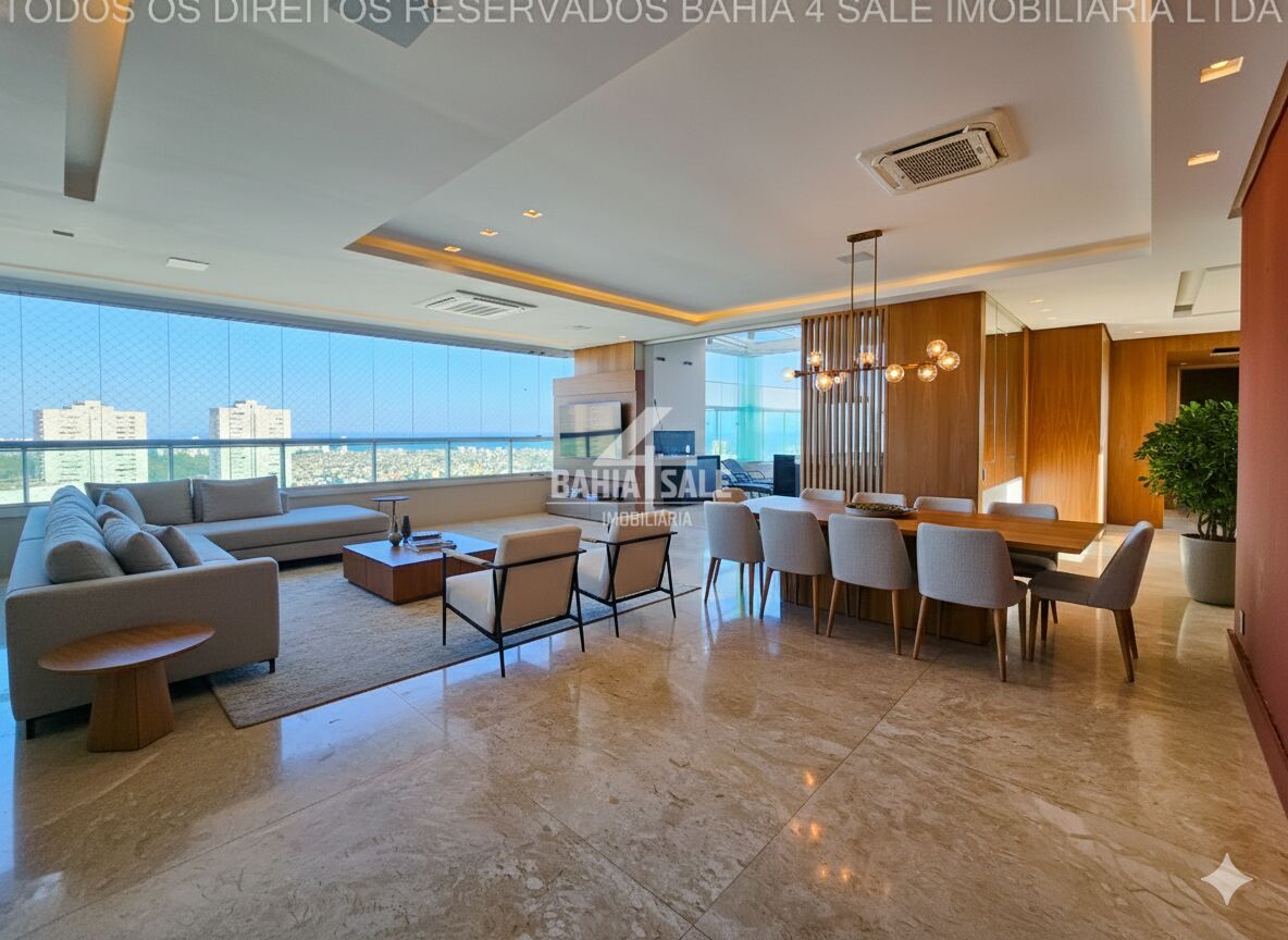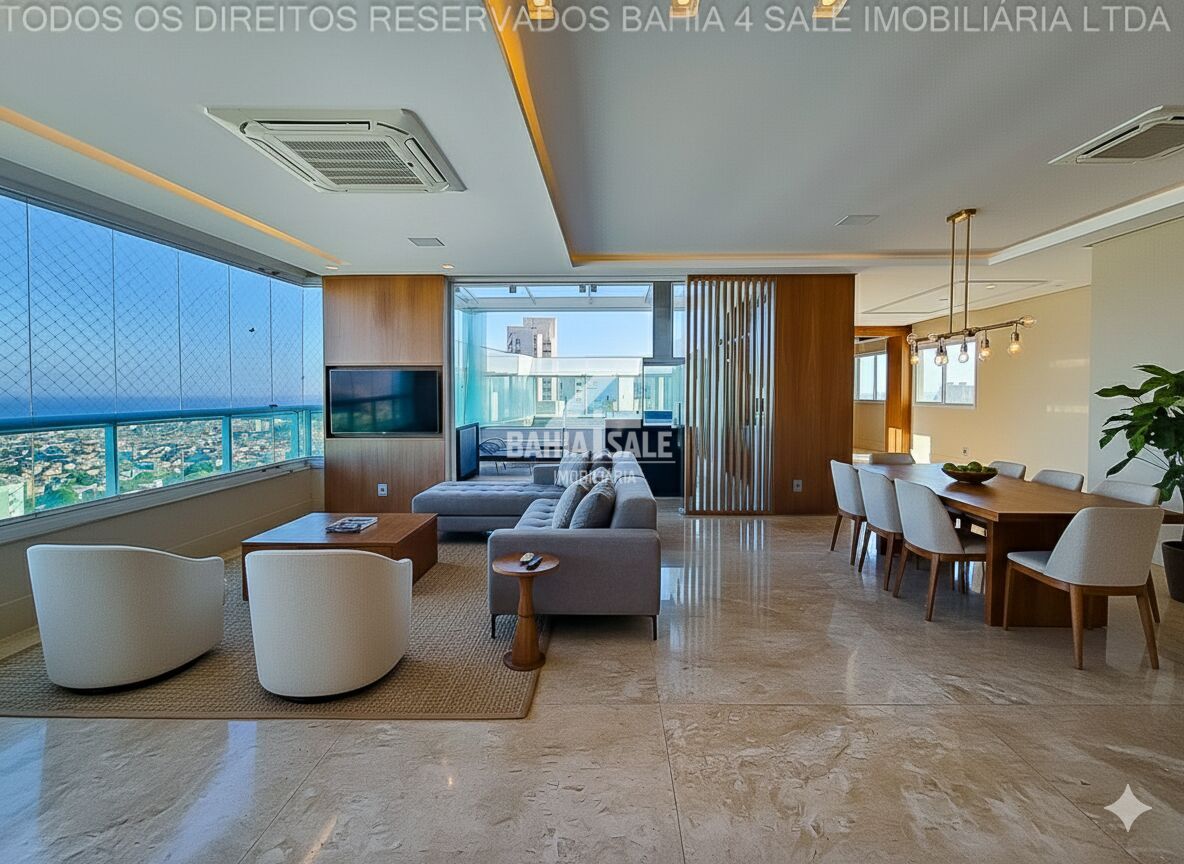Viva no topo do Horto Florestal. Esta espetacular cobertura Top House de 374m², situada no 28º andar do condomínio Horto Barcelona, redefine o conceito de sofisticação e amplitude. A unidade oferece uma das vistas mais cobiçadas de Salvador: uma panorâmica de 180° que une o azul do mar ao verde exuberante do bairro.