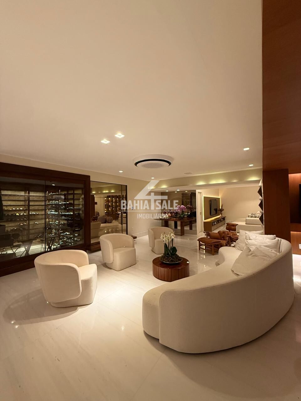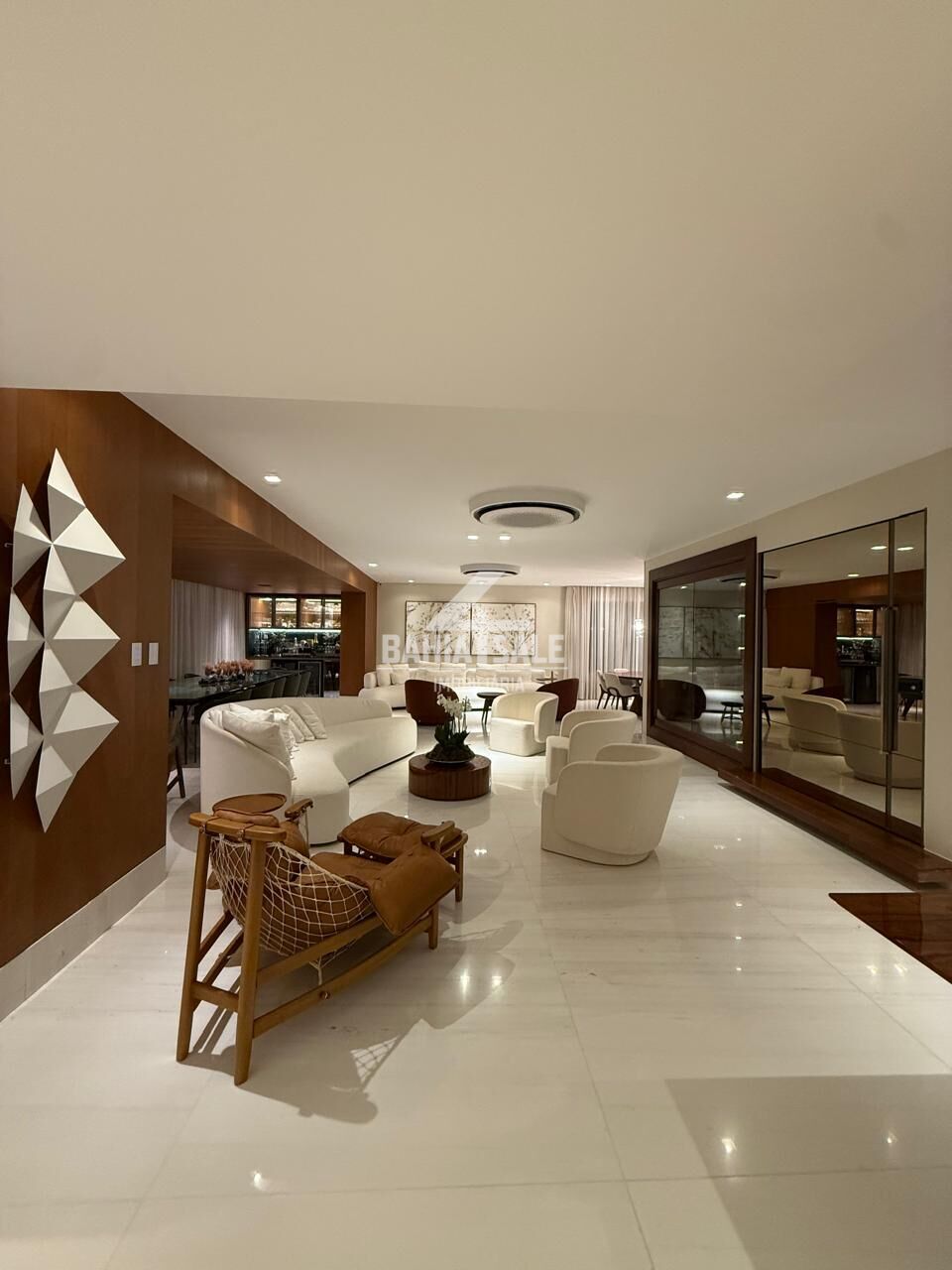 - Arte e Mobiliário Exclusivo: O imóvel brilha com obras de arte, portas Cinex e um deslumbrante lustre de cristal Baccarat. A mobília (opcional) inclui peças de altíssimo design da Home Design, Básica Home e Concasa, destacando-se a imponente mesa de 12 lugares em mármore, cadeiras e poltronas Jader Almeida, a poltrona Big Mama e a poltrona Janguada.
