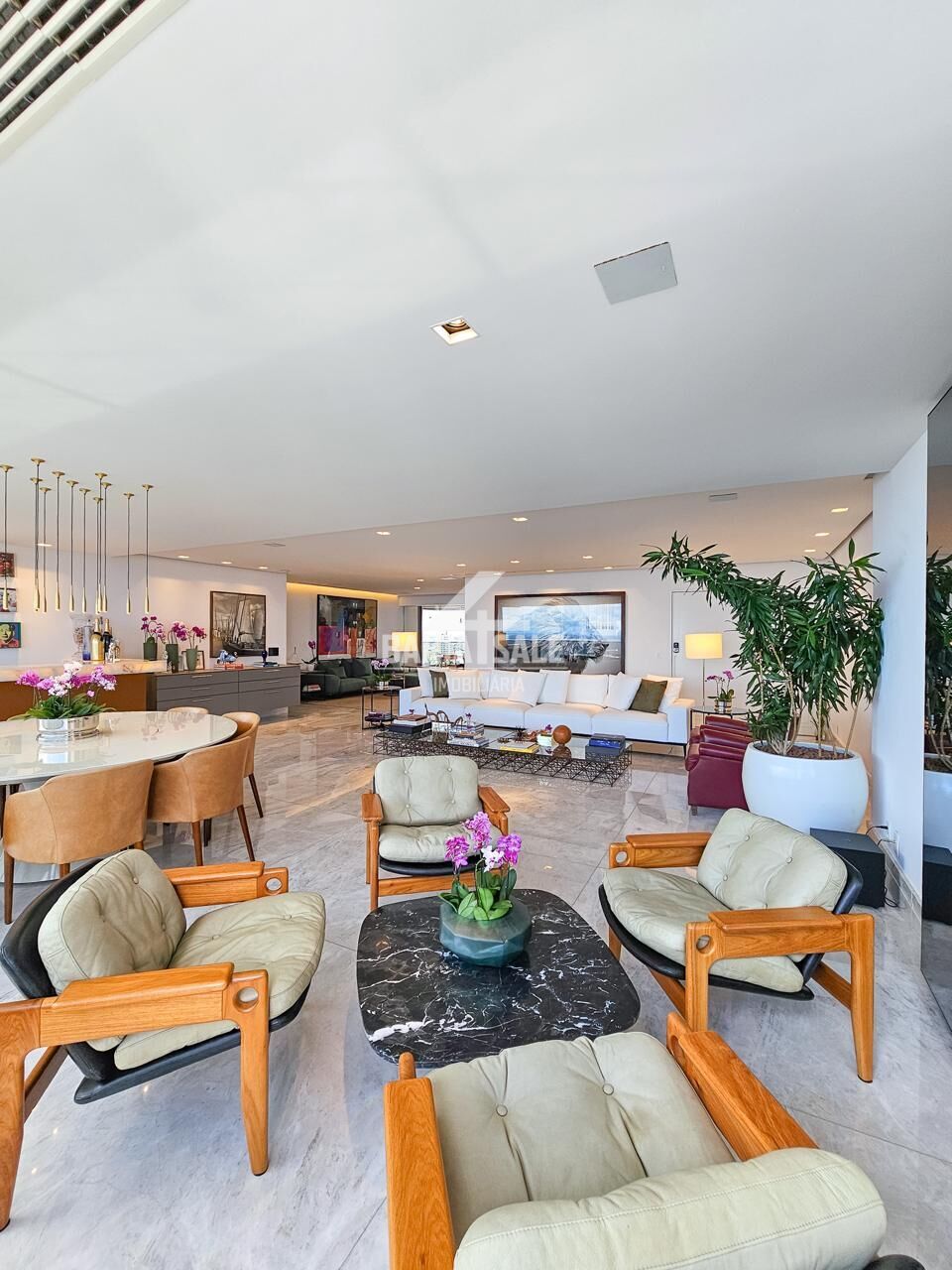 - Comodidades: Lavabo, área de serviço, entrada de serviço, dependência de empregada completa, 5 vagas de garagem soltas e depósito.